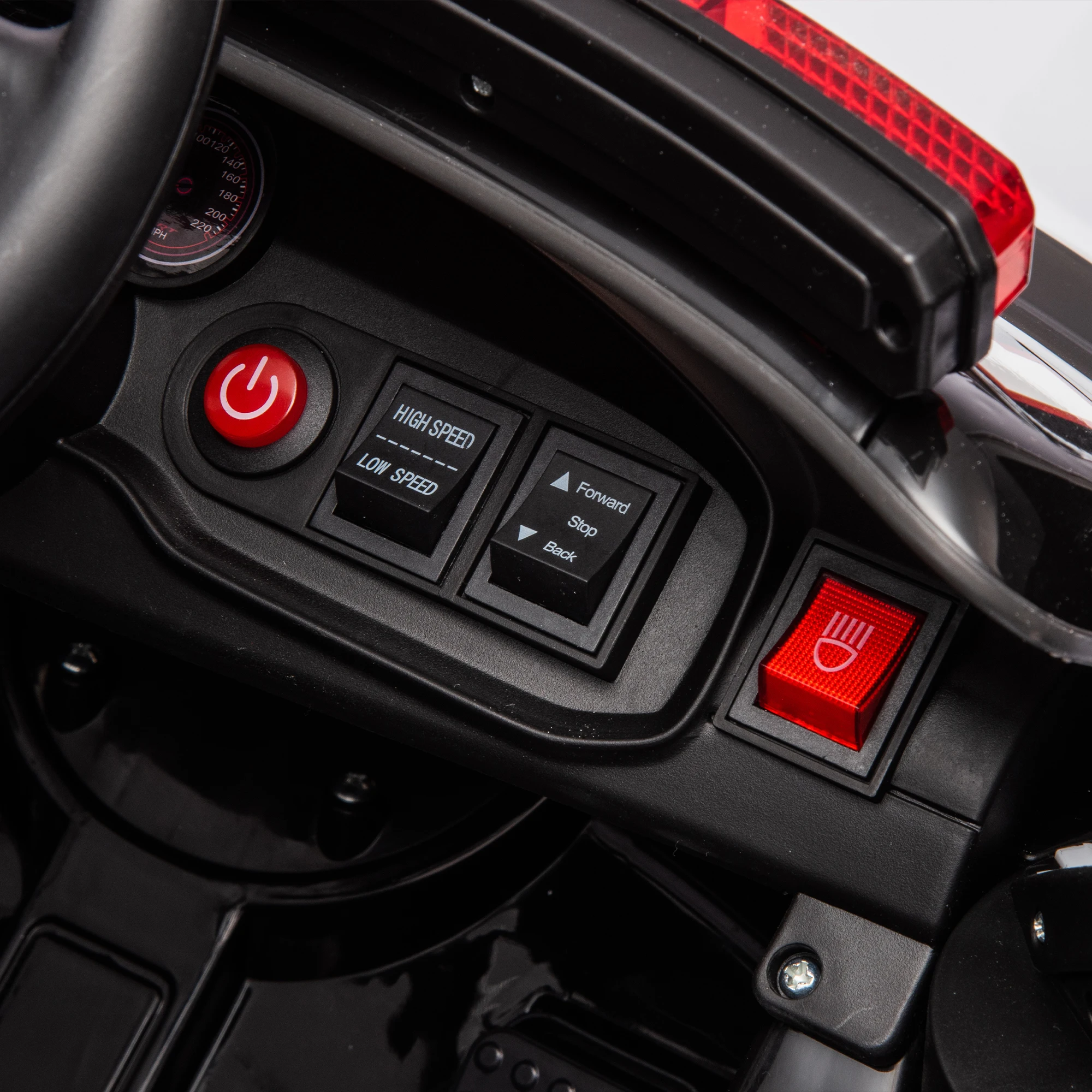 The Audi R8 Mini's multimedia console features a USB port, Aux In, integrated music, start-up engine sounds, working horn, and steering controls.