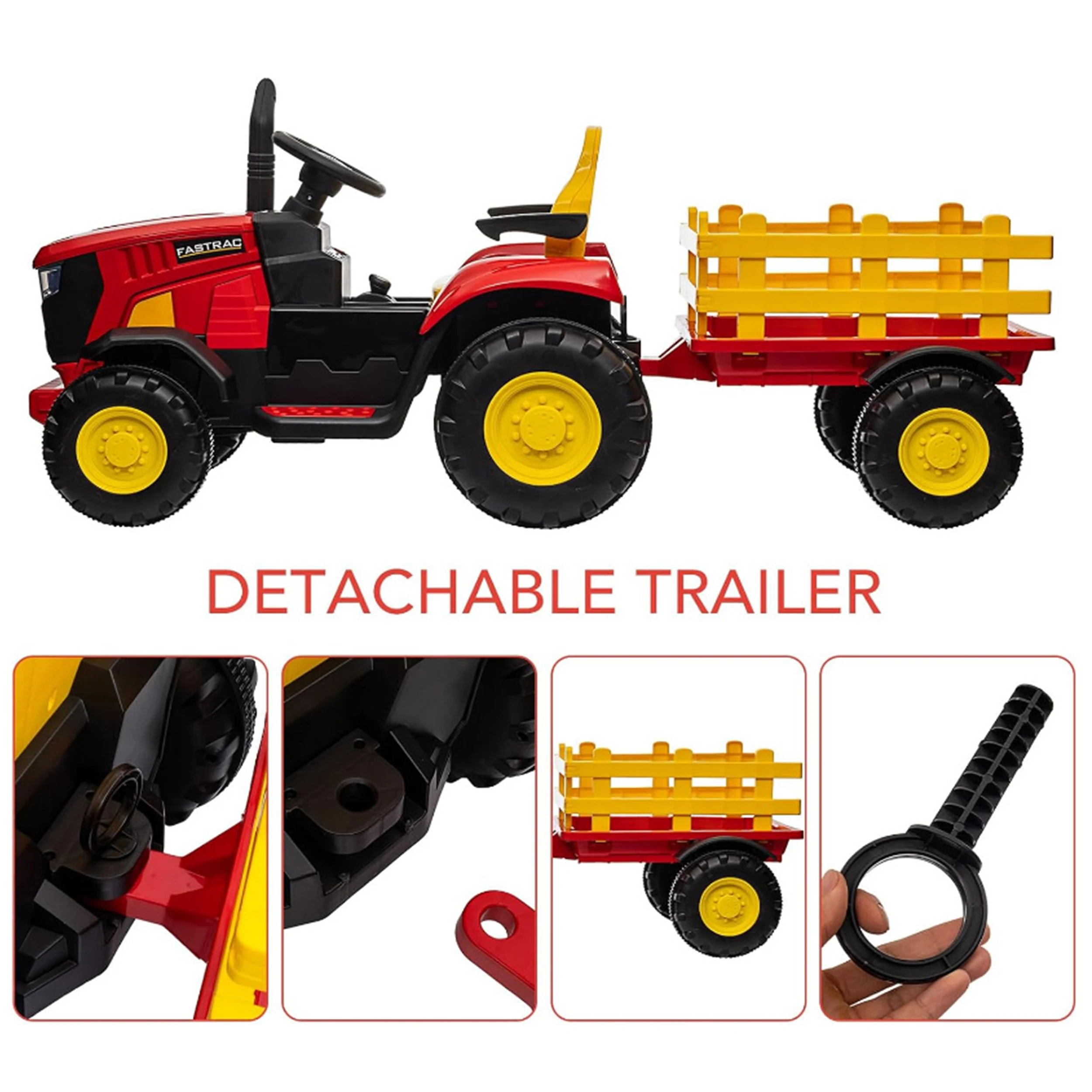 12V Ride-On Tractor with Removable Trailer – Remote Control, Music & LED Lights